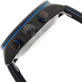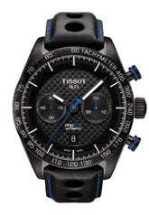 Ein Chronograph, der Funktion und Stil vereint: Der Tissot PRS 516 besticht durch sein massives 45-mm-Gehäuse aus antiallergischem, PVD-beschichtetem Edelstahl und das schwarze Lederband mit Butterfly-Faltschließe. Die ionenplattierte Lünette mit Tachymeterskala und das schwarze Zifferblatt mit blauen Akzenten schaffen eine markante Optik, während das Datum auf 6 Uhr positioniert ist. Das bewährte Automatikwerk ETA A05.H31 treibt Stoppfunktion, Datumsanzeige und den zentralen 60-Sekunden-Chronographenzeiger zuverlässig an. Leuchtzeiger und Leuchtindices garantieren Lesbarkeit unter allen Bedingungen. Die blauen Drücker harmonieren mit den farbigen Chronographenzeigern und unterstreichen das durchdachte Design. Dank doppelseitig entspiegeltem Saphirglas und 10-Bar-Wasserdichtigkeit meistert diese Uhr sowohl alltägliche als auch sportliche Herausforderungen – vom Schwimmen bis zu Outdoor-Expeditionen. Ein robustes Instrument für anspruchsvolle Träger, die Präzision und Langlebigkeit schätzen.