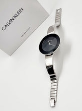 CALVIN KLEIN Chic Quarz Damenarmbanduhr mit schwarzem Zifferblatt