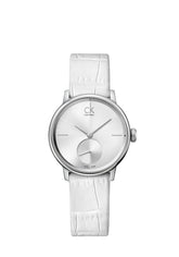 CALVIN KLEIN Accent Silver Dial White Leather Ladies Watch