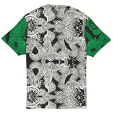 Versace-T-Shirt mit klassischem Print. Farbblock in Weiß, Grün und Blau mit dem charakteristischen Barock-Print des Hauses. Rundhalsausschnitt, lockere Passform, gerader Saum und kurze Ärmel. Modell A79235S. Hergestellt in Italien. Tolles Shirt für das Wochenende, passt zu Jeans und Shorts.